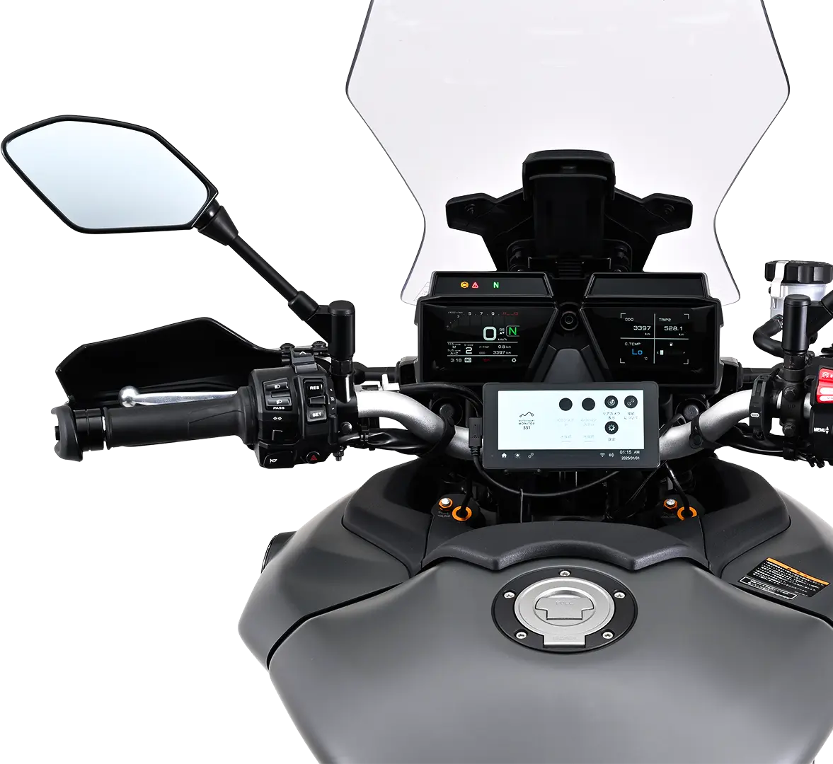 車体後方に設置した広角カメラの様子を、モトスマートモニターに表示。